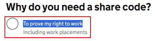 - All Right to Work Share Codes start with the letter 'W'. Please ensure you have given us the correct code before submitting.